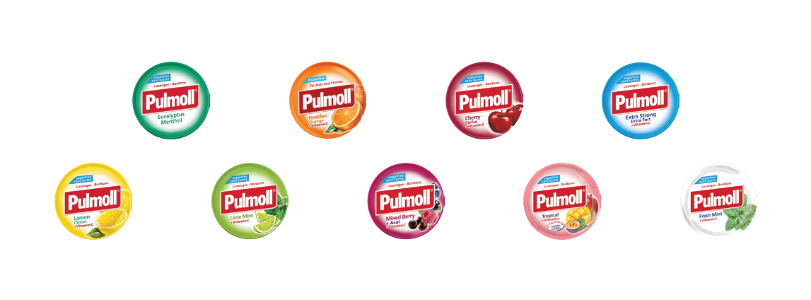 Pulmoll là thương hiệu kẹo ngậm giảm ho được phát triển hơn 60 năm, là thương hiệu nổi tiếng nhất tại thị trường nước Đức. Pulmoll được phát minh bởi dược sĩ người Pháp Jacques Lafarge vào năm 1946, tên thương hiệu có nguồn gốc từ tiếng Latinh 'pulmonis', có nghĩa là phổi. Năm 1956, Pulmoll lần đầu tiên được giới thiệu tại Đức dưới dạng sản phẩm OTC (sản phẩm không kê đơn). Viên ngậm Pulmoll có lợi cho cổ họng, sử dụng để giúp phòng ngừa và giảm các triệu chứng của cảm lạnh như ho, đau họng, khàn tiếng.